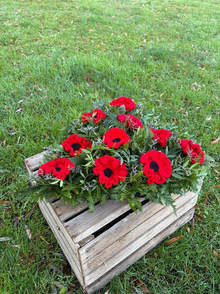 A Heart Tribute with Hand-Knitted Poppies