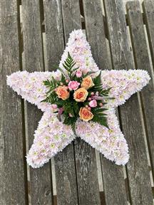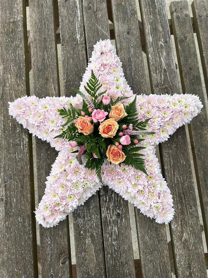 Whether you choose a heart funeral flowers design, a funeral star like the second photo below, or another symbolic shape, we always ensure it feels balanced, natural and personal.