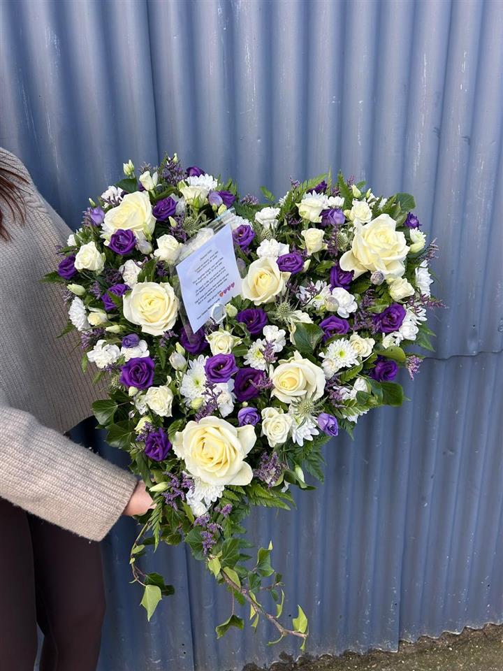 We also created a solid heart funeral tribute in purple and white — the colours of a much-loved netball team member’s club.