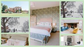 A stunning 18th-century retreat on 400 acres — with six bedrooms, dining and living spaces, and woodland walks. Ideal for bridal parties or families who want an exclusive countryside escape in rural contemorary countryside guest rooms. Dogs allowed with pre booking.