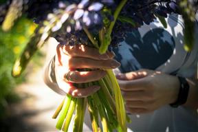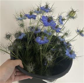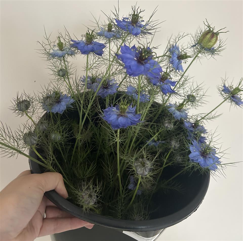 - A selection of cut flowers: cornflowers, nigella, cosmos, stocks, tanacetum, marigolds and dahlias from tubers