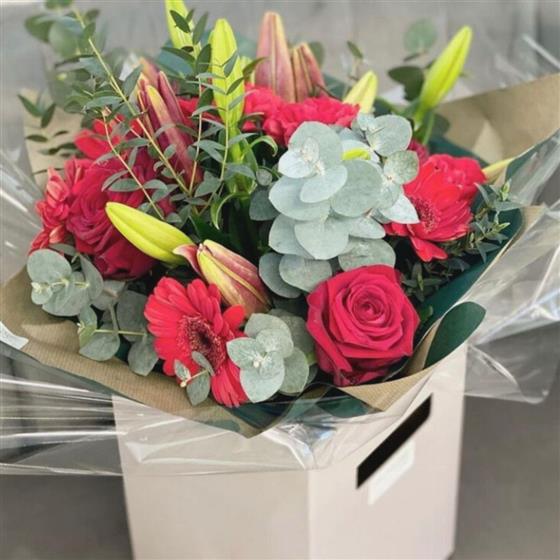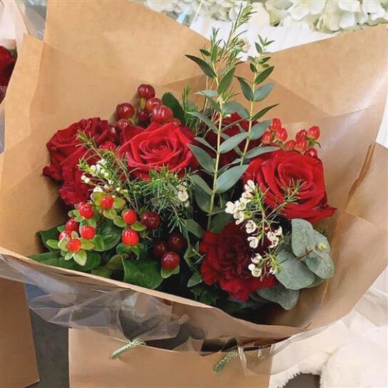 Why choose the Christmas Cracker Handtied? This bouquet is not only a stunning abundance of cheery red festive colours but also a testament to our commitment to quality. As a local independent florist, we take pride in sourcing the freshest flowers available and delivering them personally to your chosen Biggleswade, Sandy, Bedford and surrounding areas doorstep. Unlike larger retailers, our hand delivery ensures that each bouquet arrives in perfect condition, adding a personal touch to your Christmas flowers gift.