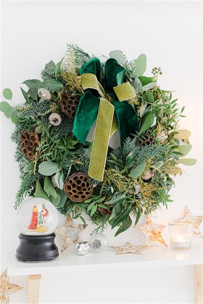 If there was ever a door wreath that will make the neighbours green with envy then the Luxury Christmas Door Wreath is it! Crafted on a 10" moss base, this exquisite wreath features a lush, abundant and full selection of seasonal winter foliages, decorated with lots of dried seed heads and finished with a rich emerald ribbon.