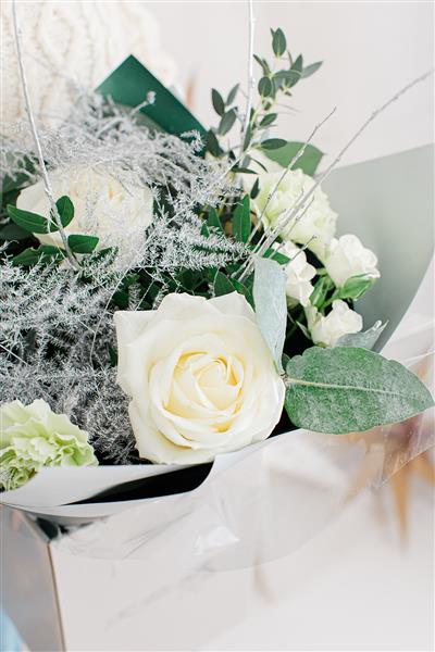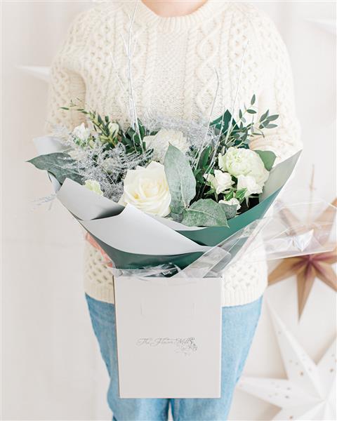 This White and Silver Christmas Bouquet is the perfect way to bring a touch of elegance and festive cheer into your home. Featuring classic white roses, spray roses, carnations, eucalyptus, and a mix of foliages, it's finished off with delicate silver accents for that frosty, wintery feel. Whether you're treating yourself or sending it as a gift, this bouquet adds a timeless seasonal charm to any room.